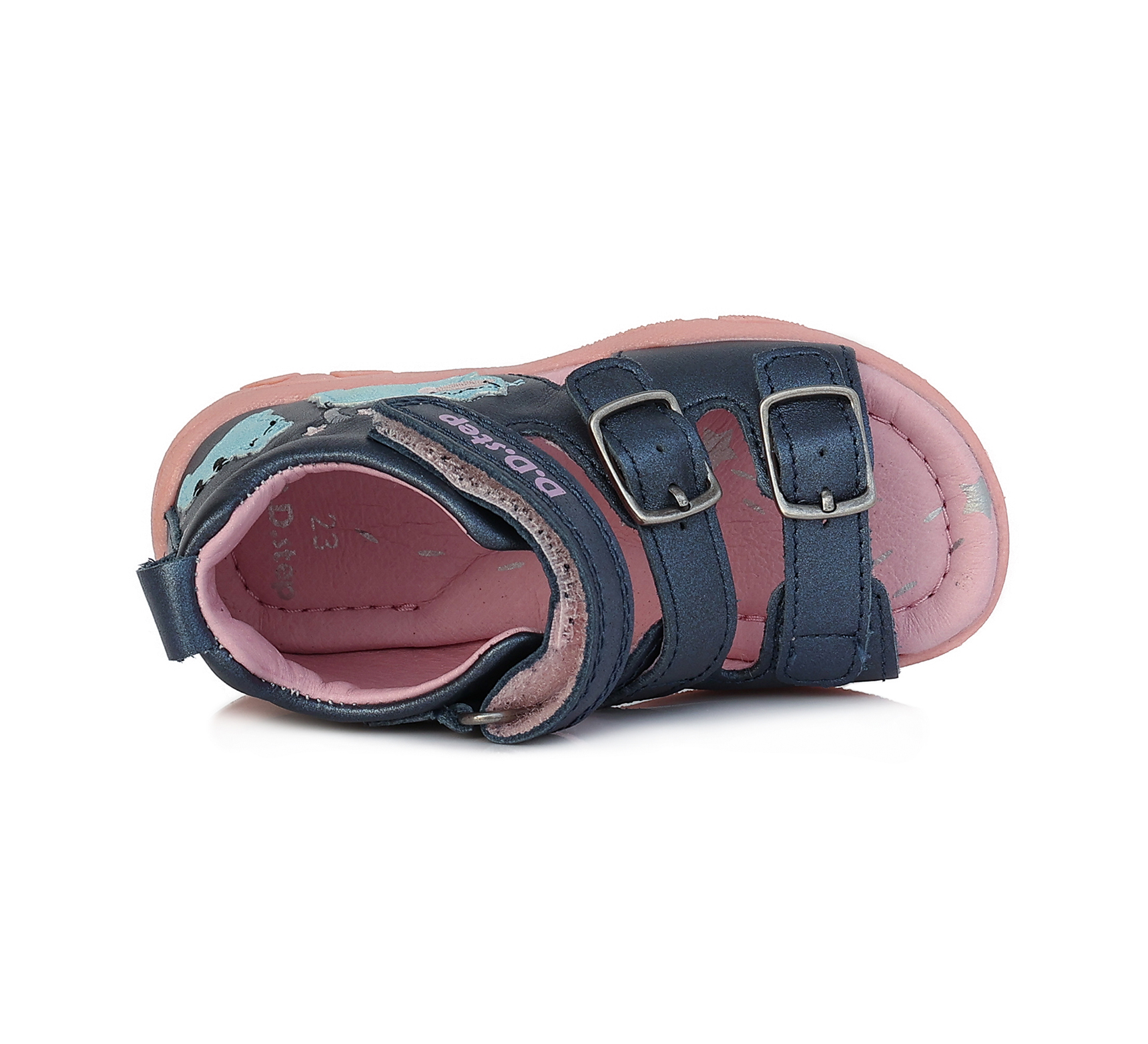 D.D.Step szandál, lány, kék felsőrész, cicás minta.