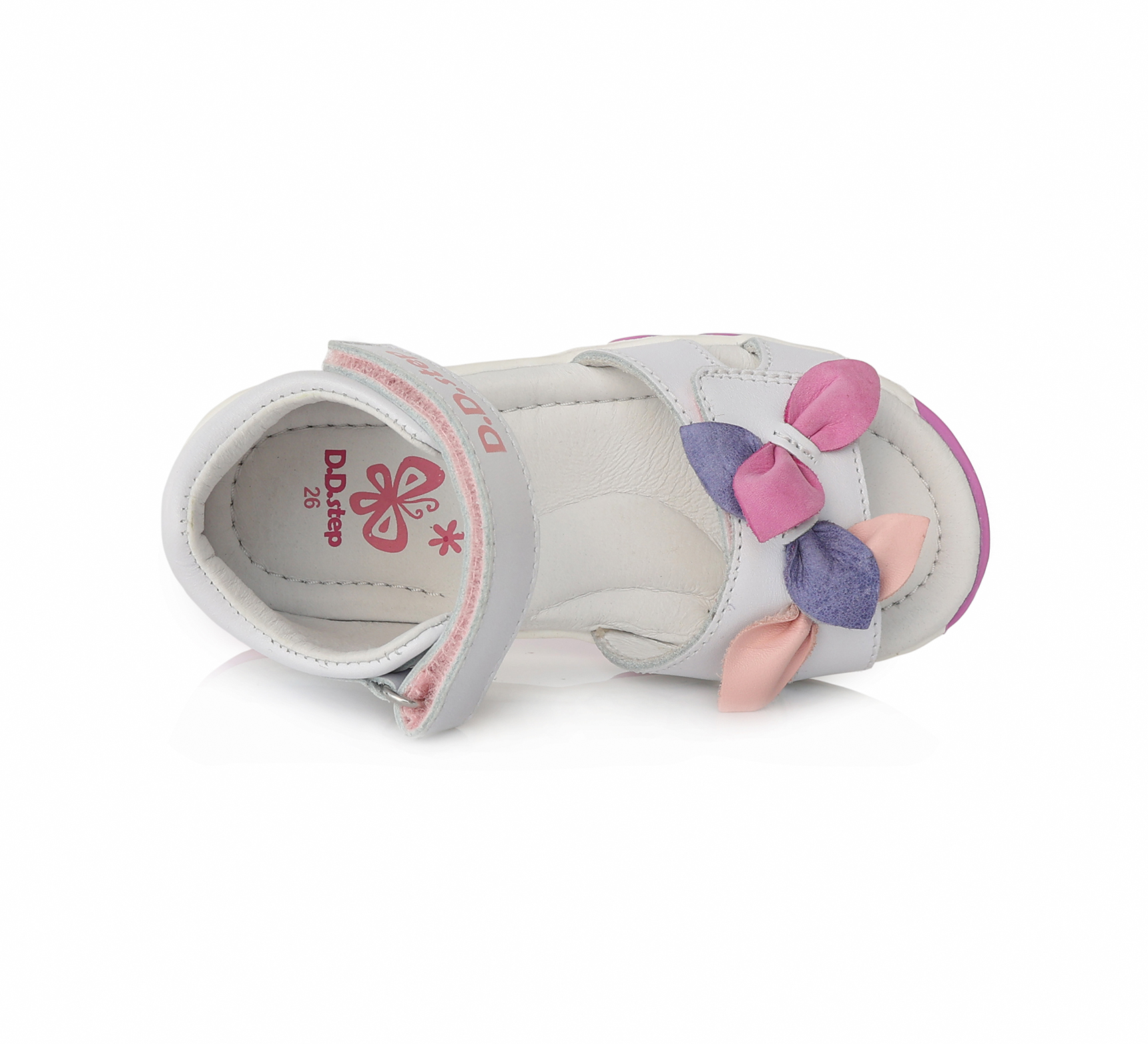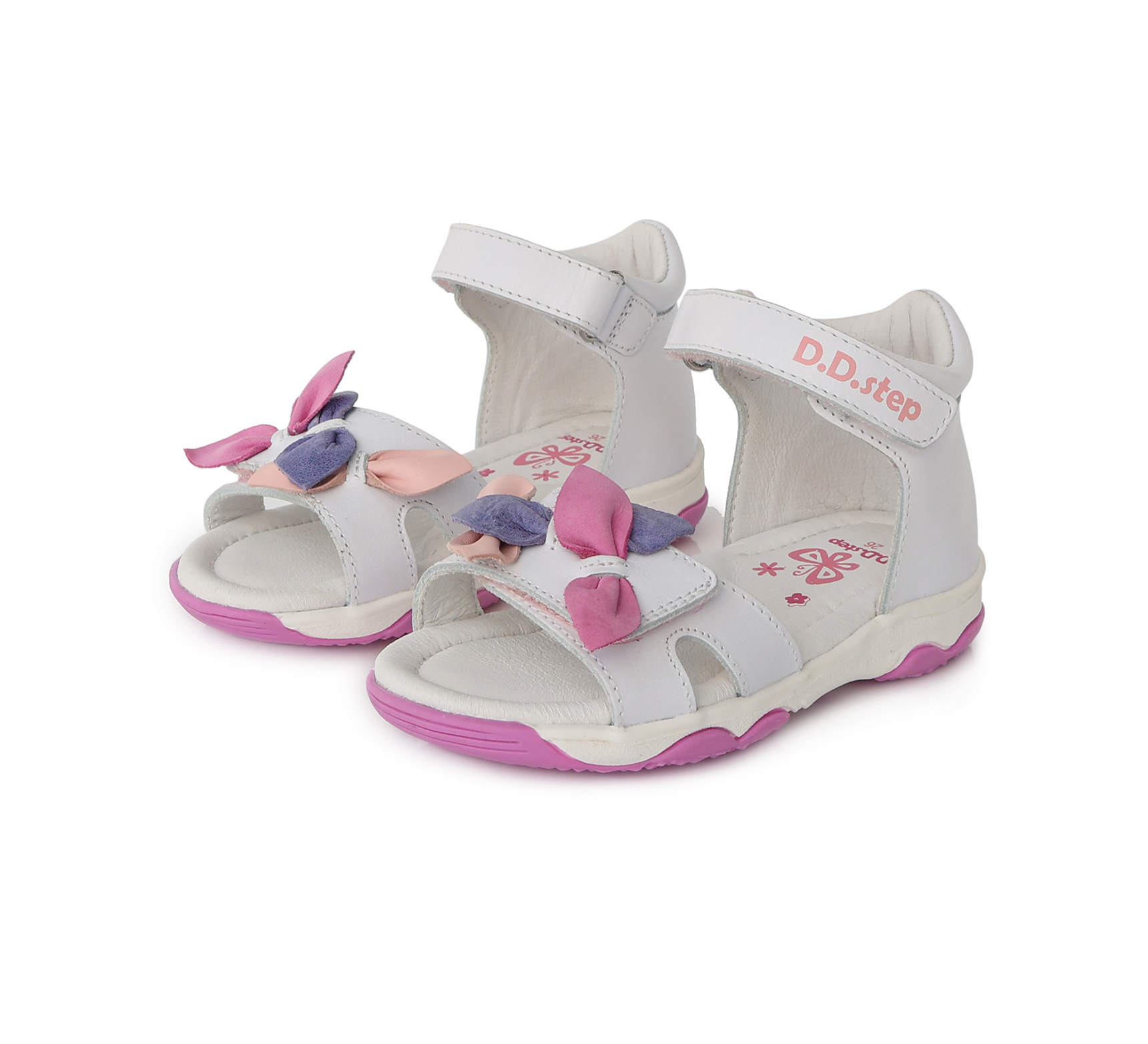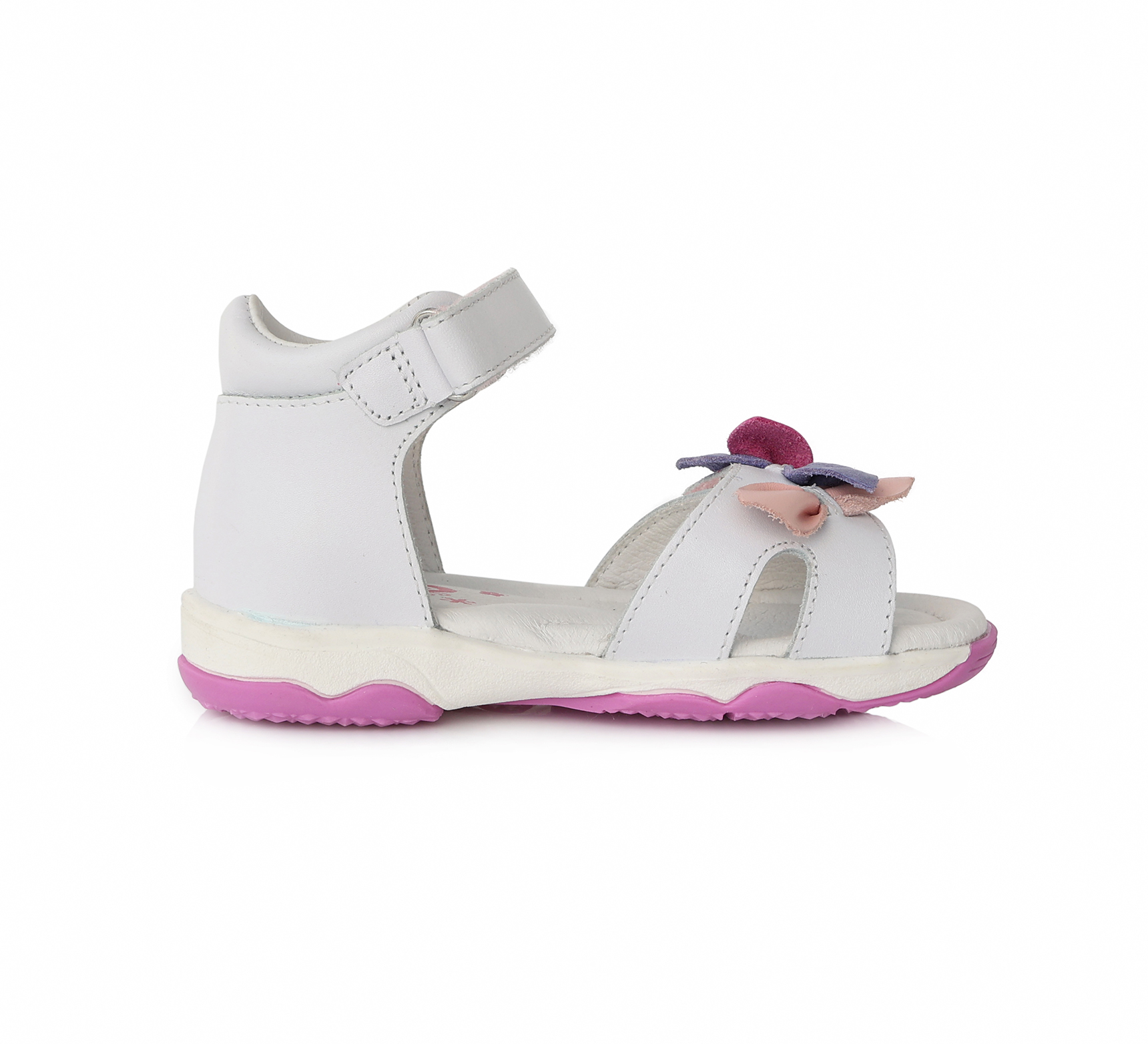 D.D.Step szandál, lány, fehér felsőrész, virágos betéttel.