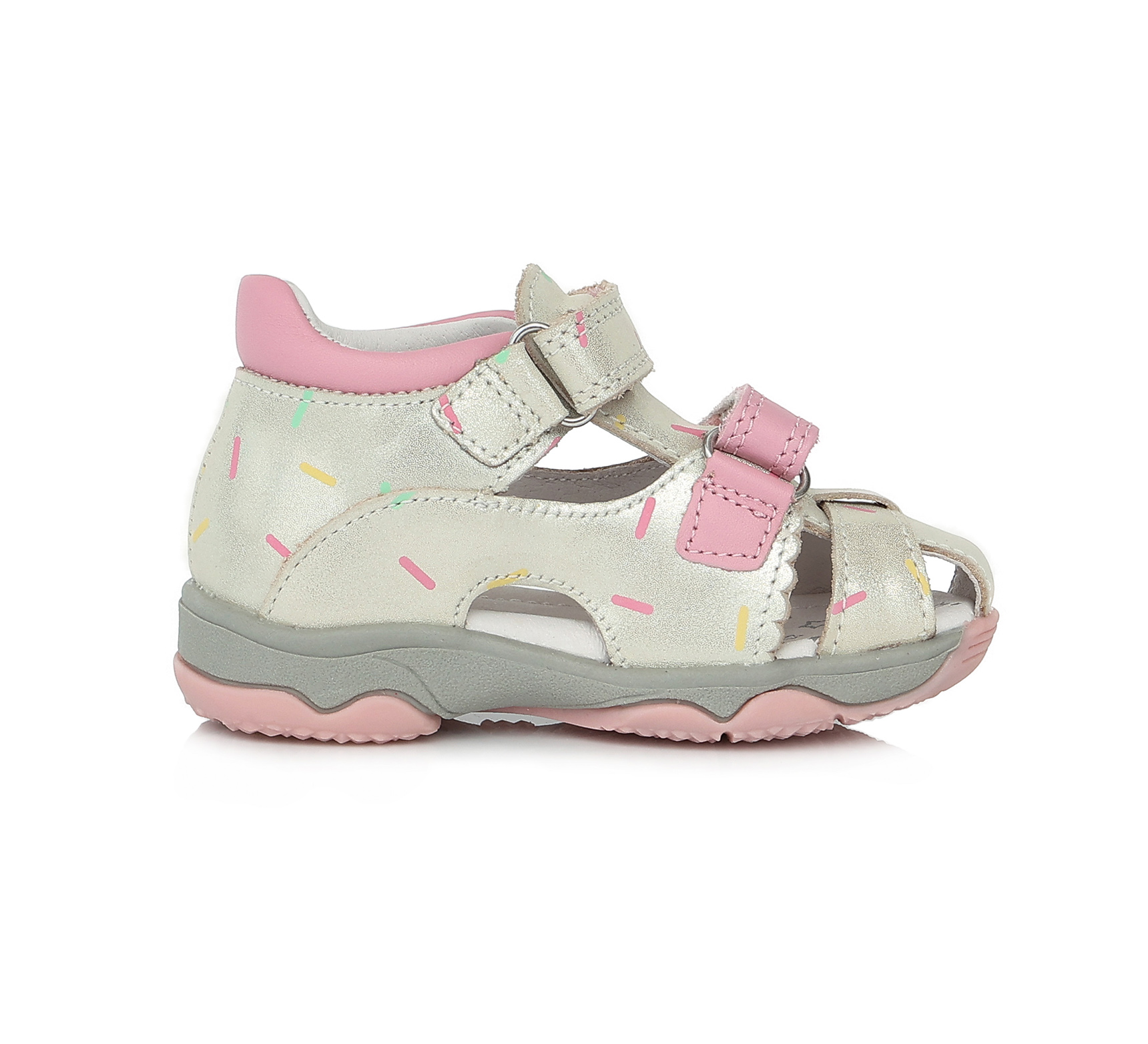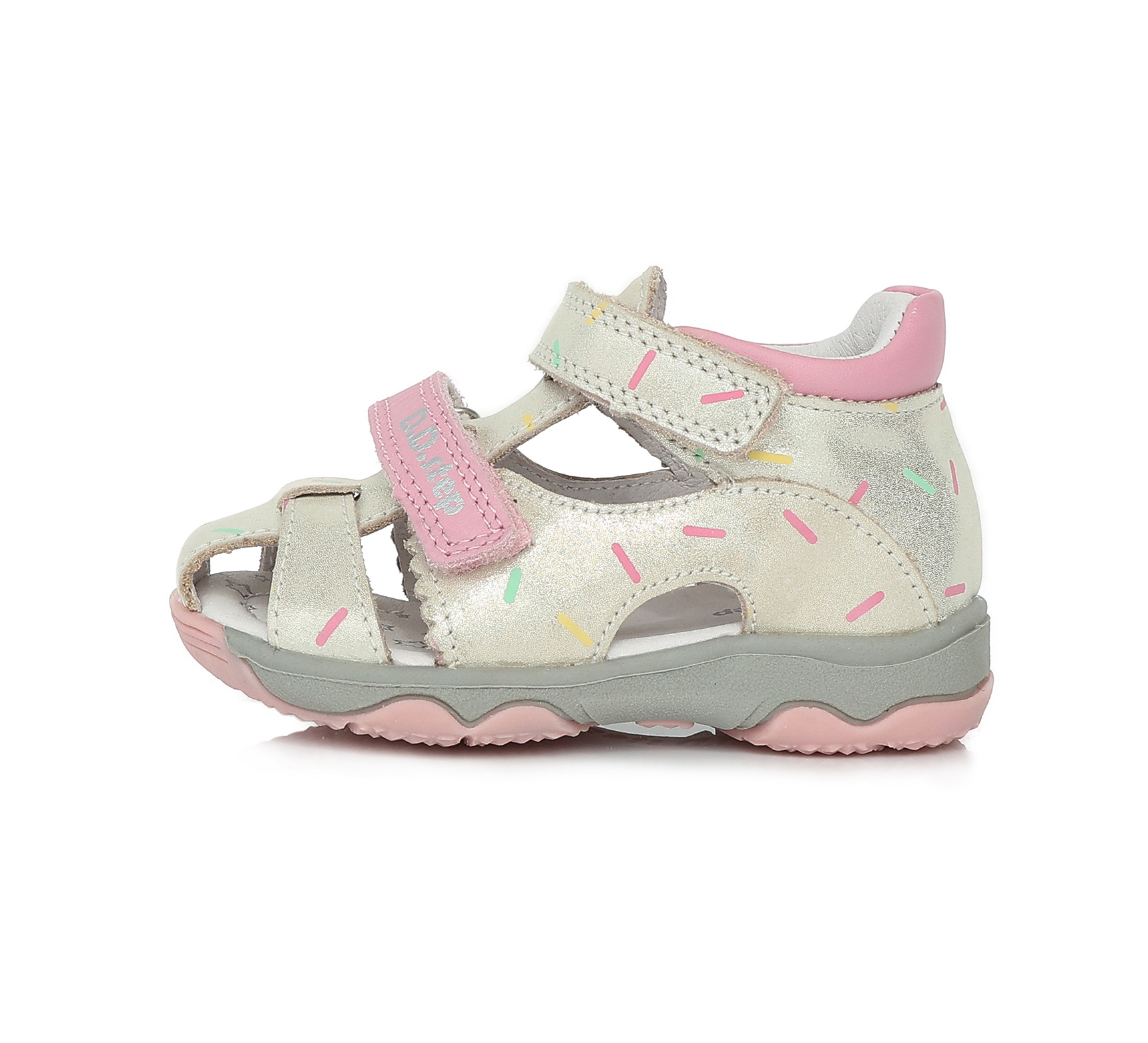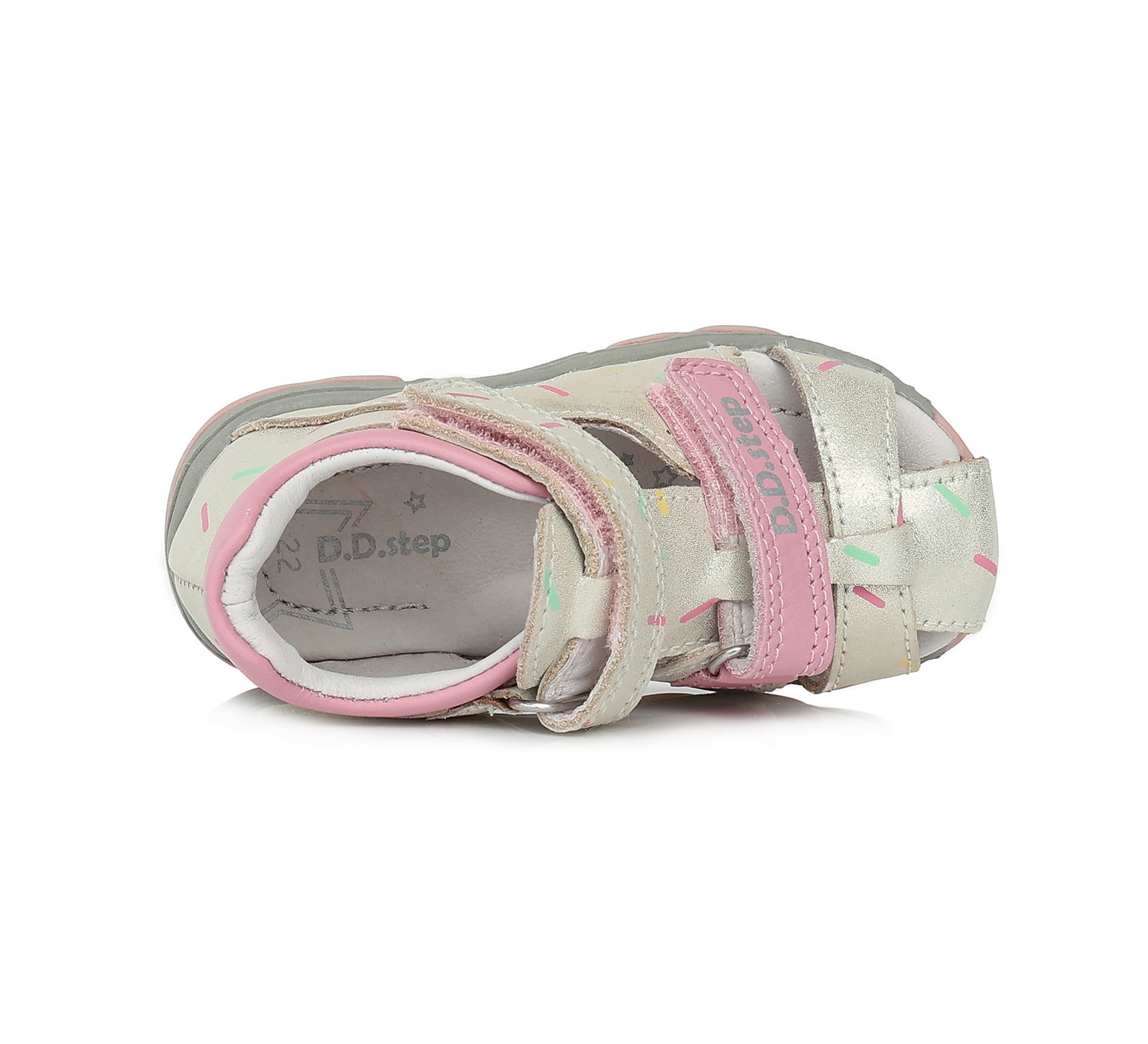 D.D.Step szandál, lány, ezüst zárt orrú, színes mintával.